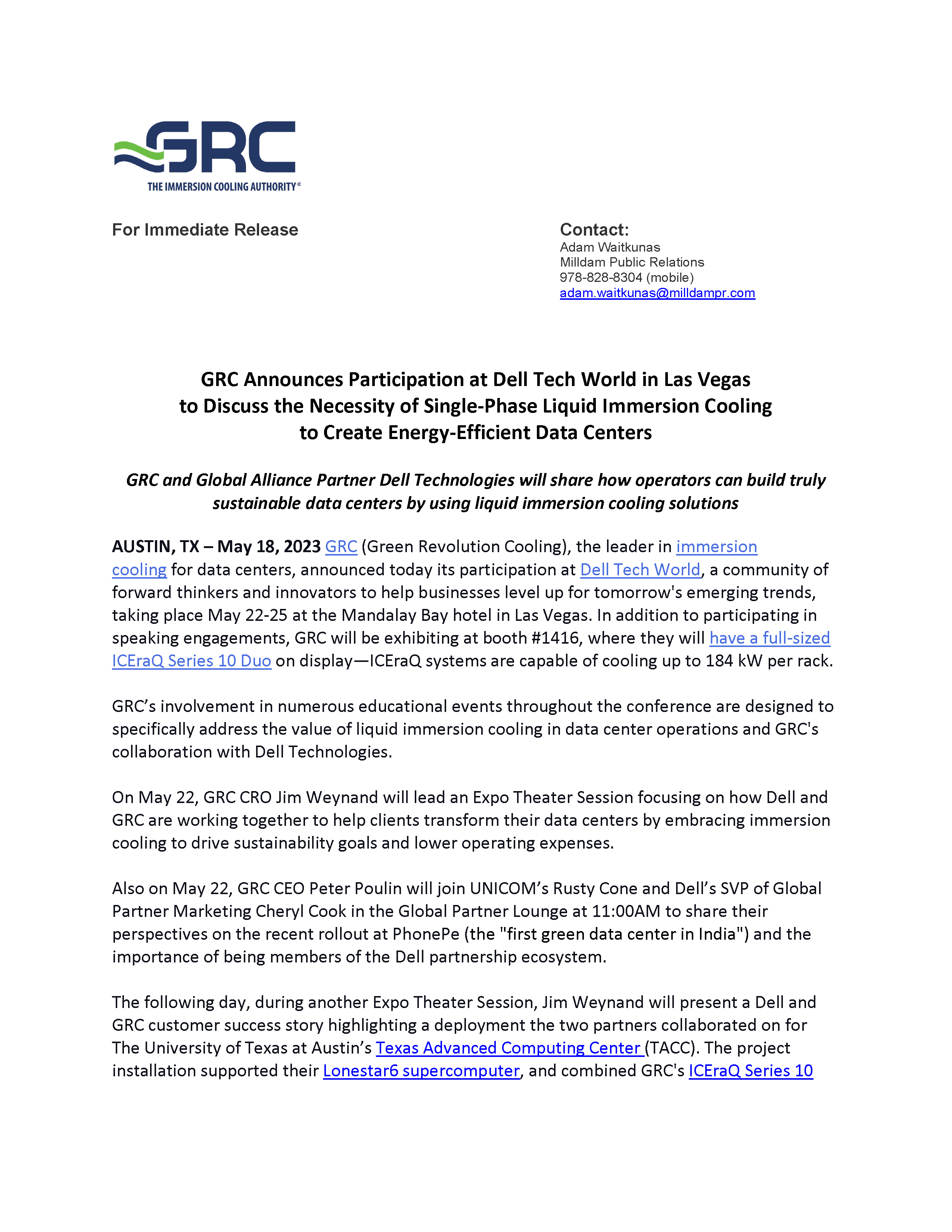 ©2026 GRC, Green Revolution Cooling, and The Immersion Cooling Authority are each registered trademarks of Green Revolution Cooling, Inc.