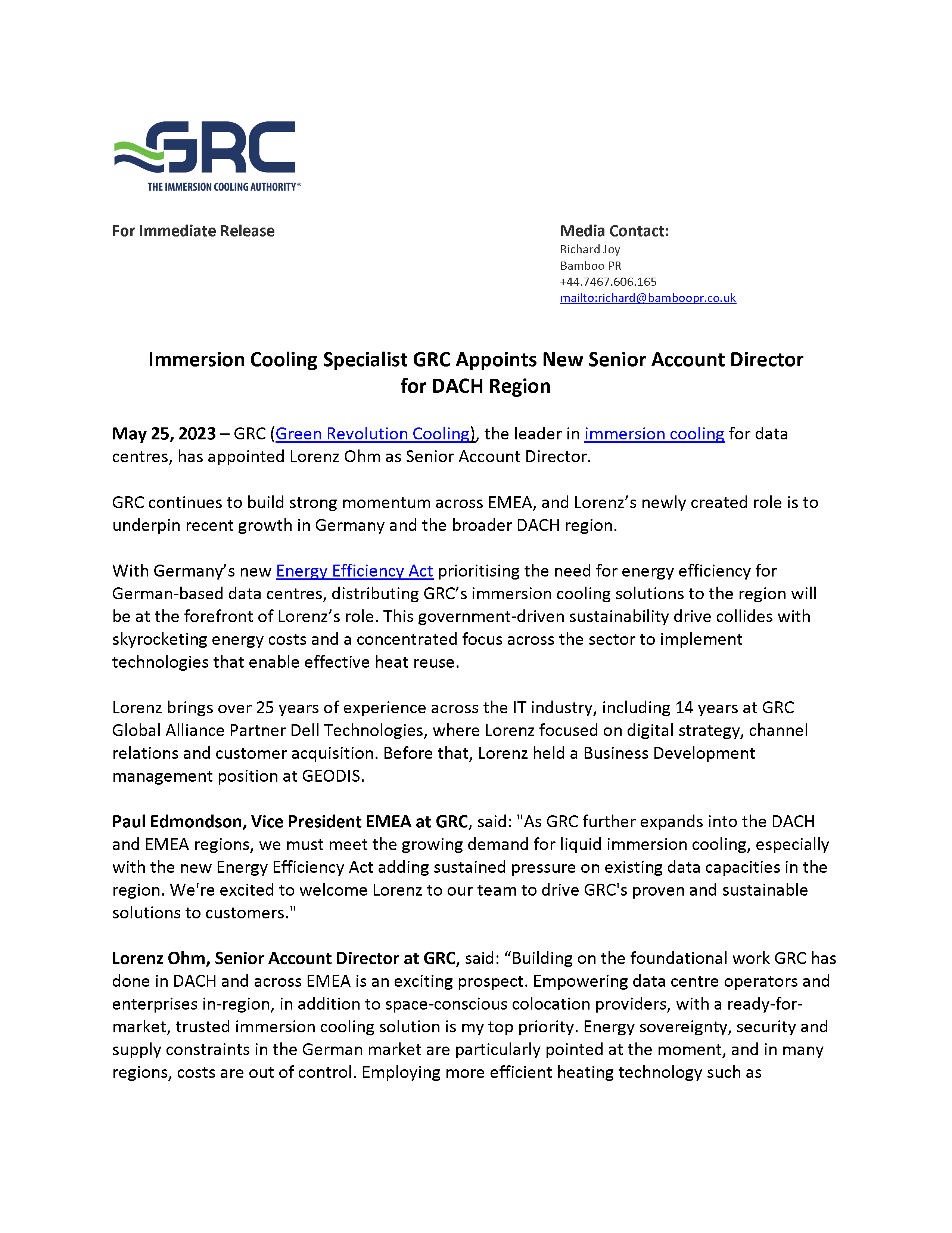 GRC Appoints New Senior Account Director for DACH Region